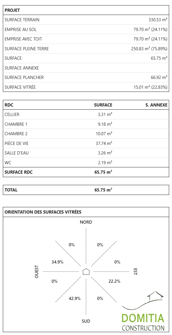 Possibilité de plans personnalisés. Norme RE 2020.