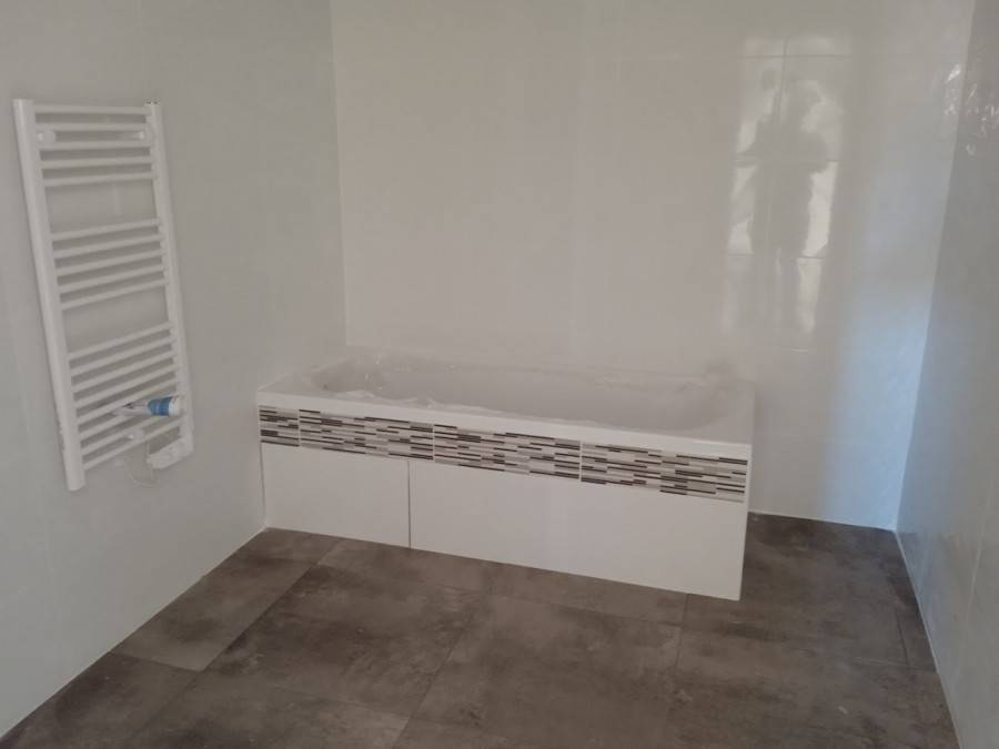 3 chambres + 1 bureau ou 4 chambres, salle de bains équipée et faïencée avec douche à l'italienne, baignoire avec meuble vasque et sèche-serviette.